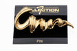 Bright gold plated pewter brooch 2 3/4 inches x 1 1/4 inch on a 2 1/2 x 2 inch hang card