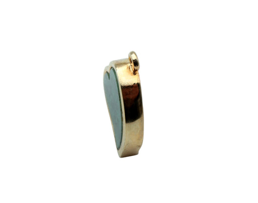 2 pieces ForWyoming jade set in a gold plated sterling casting. 17 x 14 mm (2 loops, 1.2mm dia. ). This products is stamped, sterling.