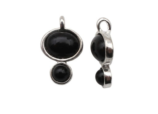 2 Dozen ForBlack glass 10x8mm and 5mm cabochons set in a silver plated cast setting. 13mm x 20mm overall length and 2mm loop