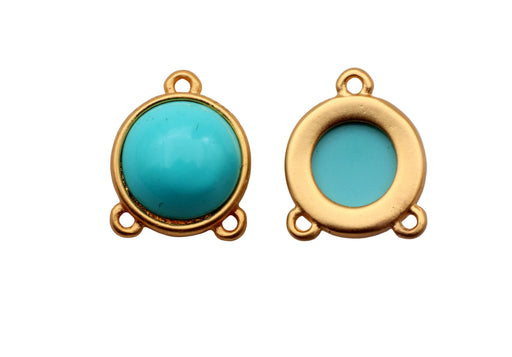 50 Pieces ForGold plated casting 13.5mm diameter with 11 mm glass turquoise color cabochon with 1.2mm opening on loops