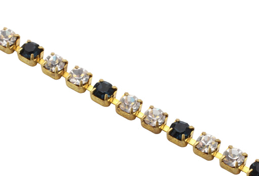 10 feet for17ss (4mm) jet and crystal Swarovski rhinestones set in un plated brass cup chain