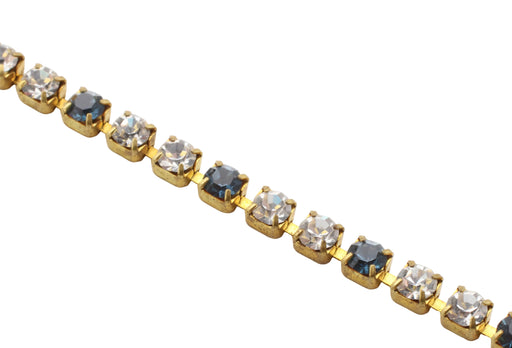 17ss (4mm) montana & crystal Swarovski rhinestones set in un plated brass cup chain