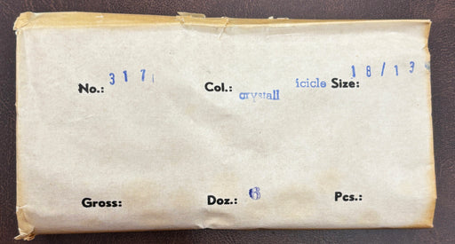 6 Dozen ForVintage 1950's Pear Shape crystal icicle 18 x 13mm cabochon pointed back. Made in Western Germany in original packs