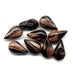 Vintage glass, 13 x 7.8mm pointed back pearshape cabochons. Striped with gold colored accents called Goldfluss. Made in West Germany. 1950's - 1960's.