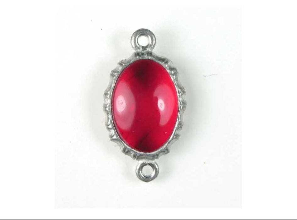 16 x 11 oval plastic, smooth-top cabochons set in a white metal casting with two loops.