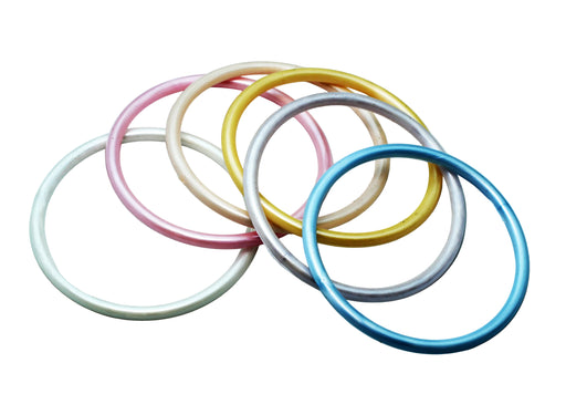 36 Pieces For36 bracelets in an acetate box containing 6 pastel colors - 6 of each color. 3 inch outside diameter. Made in USA