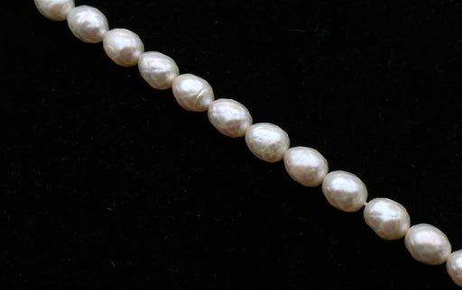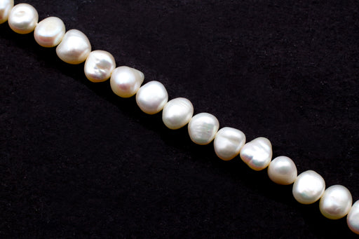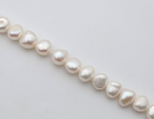 1 Strand ForCultured freshwater white potato pearls. Approx. 8 - 10mm beads strung on 16 inch strands. B grade. Size will vary as this a natural material