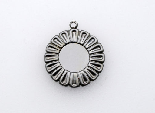 100 Pieces ForSmall, unplated steel pendant stampings. 19mm outside diameter with a 10mm diameter flat recess for gluing a cabochon or other flat-back centerpiec...