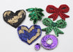 Assorted vintage 1970s beaded appliques. Glass bugle beads, seed beads and sequins are attached to a cloth backing. (2 of each style)