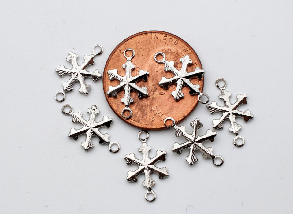 Silver plated brass snow flake charm stamping 13mm x 8mm wide with 1.25mm holes